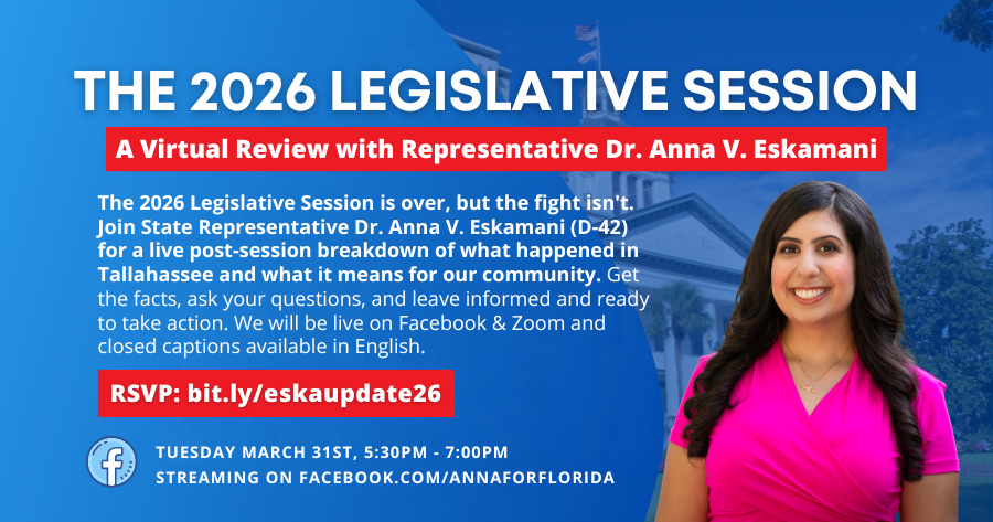 - WHAT: Rep. Eskamani’s 2026 Virtual Legislative Session Review
